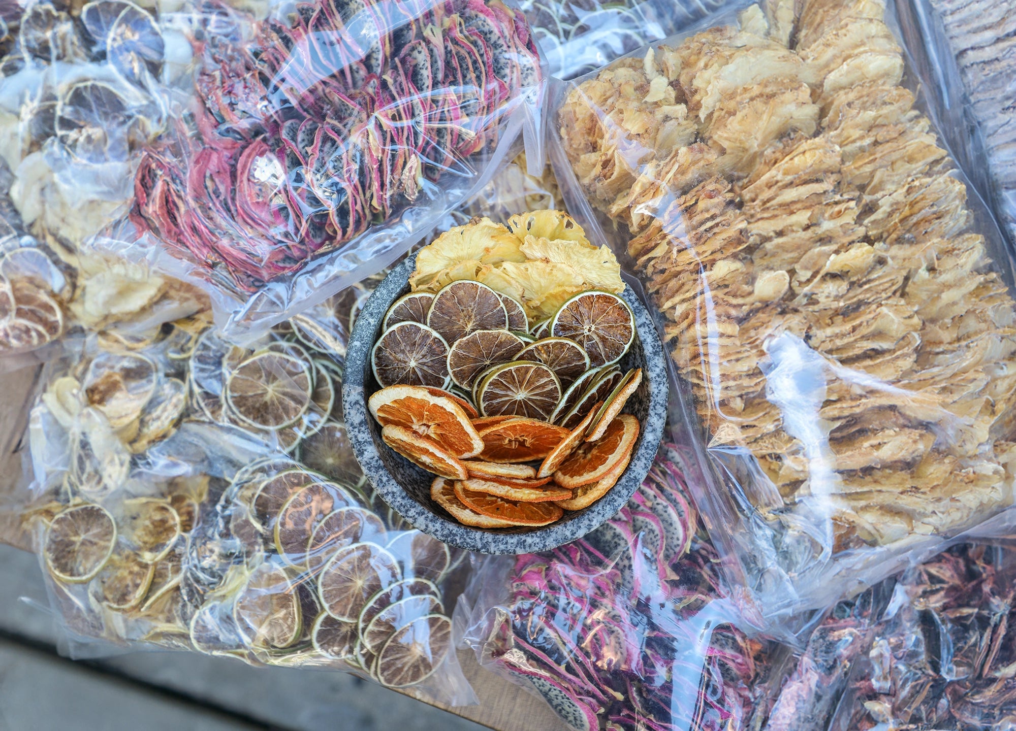 Dehydrated fruit cocktail garnishes are slices of fruit that have been naturally preserved, in our case, through an FDA-approved dehydration process.